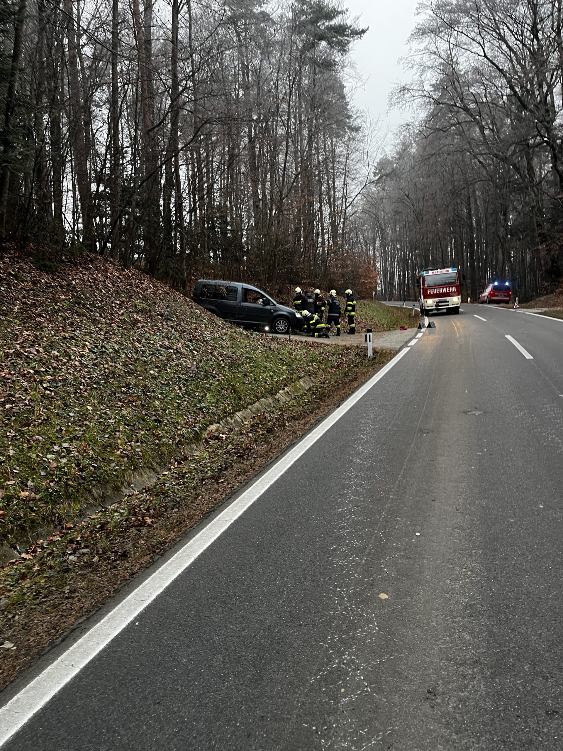 2 PKW sind kollidiert und von der Straße abgekommen